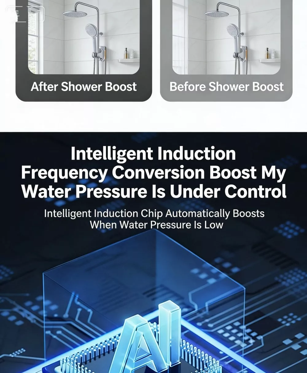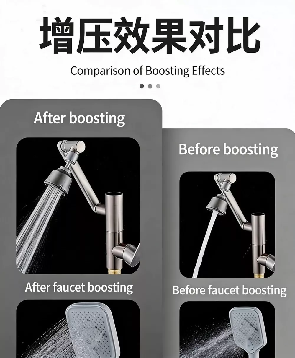 Suihkupään paineen korotus: Parantaa suihkun veden ulostulovoimaa, ratkaisee heikon veden virtauksen ja vaihtelevan veden lämpötilan ongelmat, mikä optimoi suihkukokemuksen.