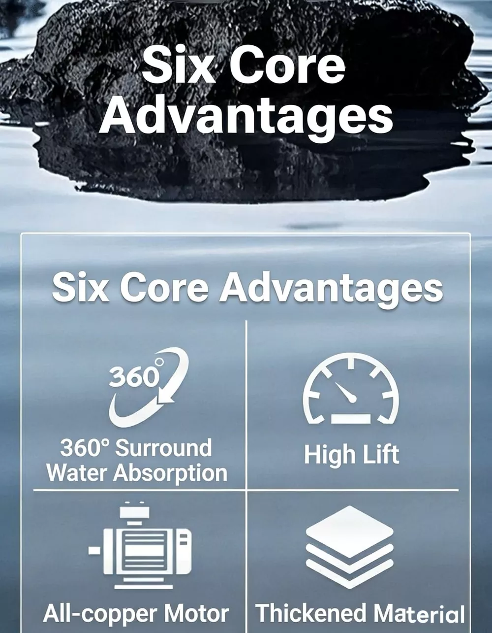 Uppopumppu on kompakti, tehokas viemäriratkaisu, joka on suunniteltu sekä kotitalouskäyttöön että kevyeen kaupalliseen käyttöön. Erittäin pieni imu, 360° vedenotto, automaattinen suojaus ja hiljainen toiminta takaavat vakaan, turvallisen ja kätevän vedenpoiston useissa eri skenaarioissa. Tämä luotettava uppopumppu ratkaisee tehokkaasti kertyneen veden, säiliön puhdistuksen ja seisovan veden tyhjennysongelmat, joten se on käytännöllinen valinta päivittäiseen käyttöön.