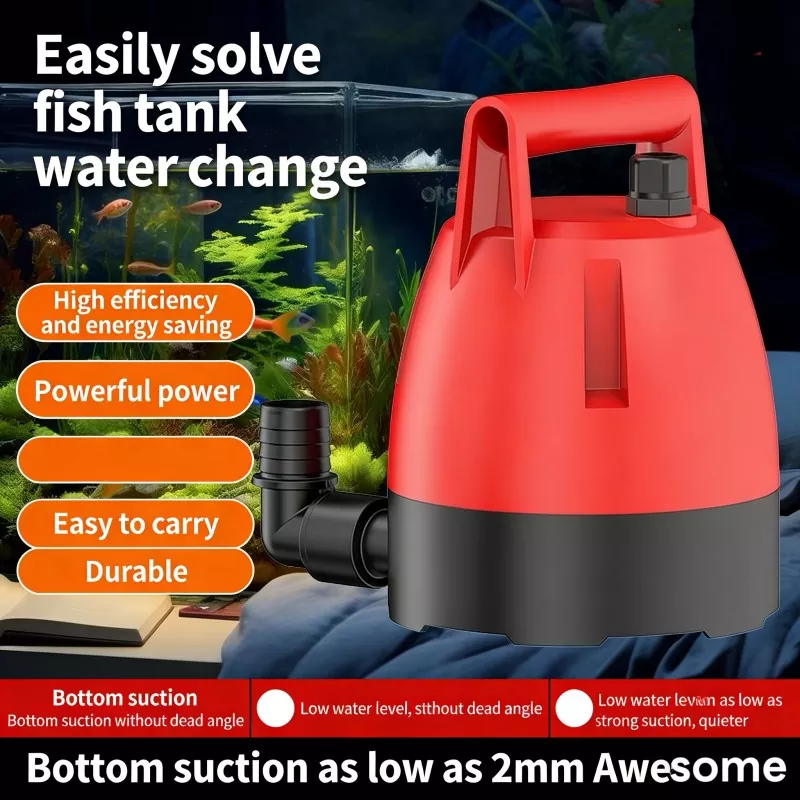 Suuri virtaus ja voimakas imu: Tarjoaa voimakkaan vesimäärän, joka poistaa nopeasti suuret vesimäärät ja puhdistaa tehokkaasti kalajätteet ja epäpuhtaudet kalasäiliöissä.
